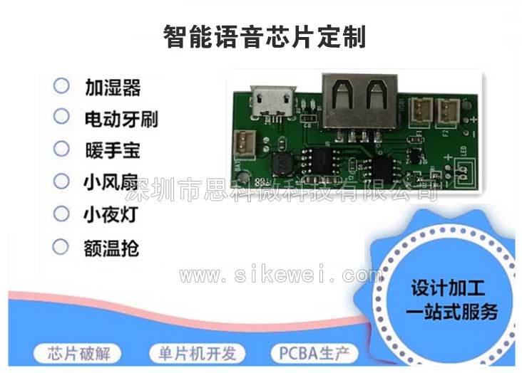 ![]() 電暖器語音播報方案,語音IC源頭廠家 價格:0.95元 型號:SKV61032 包裝:SOP8 品牌:思科微 語音芯片功能特點 : 1. OTP 存儲格式,生產(chǎn)周期快,最快僅需一天,下單無最小量限制; 2. 靈活的多種按鍵操作模式以及電平輸出方式供選擇(邊沿按鍵觸發(fā)、電平觸發(fā)、隨機按鍵播放、順序按鍵 播放); 3. 簡單方便的一線 MCU 串口以及控制方式,用戶主控 MCU 可控制任意段語音的觸發(fā)播放及停止; 4. 語音時長 40 秒,80 秒、170 秒、340 秒; 內(nèi)置一組PWM 輸出器可直推 0.5W 喇叭; 5. 支持 16 級音量調(diào)節(jié),支持循環(huán)播放等多種功能; 靈活的放音操作,通過組合可節(jié)省語音空間,最多可播放 220 個語音組合; 6. 音質(zhì)優(yōu)美,性能穩(wěn)定,物美價廉,靜態(tài)電流小于 2uA; 內(nèi)置 LVR 自復(fù)位電路,保證芯片正常工作; 7. SOP8 以及 COB 封裝可供選擇,使用方便,應(yīng)用靈活; 8. 支持 4 和弦 MIDI 播放,音質(zhì)非常優(yōu)美; 9. 外圍電路簡單,僅需一耦合電容; 工作電壓范圍:2V~5.5V; 10. IO 口豐富,內(nèi)置 MCU,可以定制各種特殊功能。 |