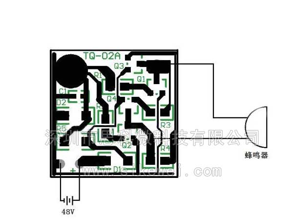 一、功能敘述 1、 工作電壓:48V; 2、 語音內(nèi)容:請注意倒車; 3、 標(biāo)準(zhǔn)女聲,音質(zhì)清晰、品質(zhì)穩(wěn)定! 4、 輸出方式:PWM輸出。 5、本產(chǎn)品PCB上已經(jīng)接好電子元件,只需接電源和蜂鳴器。
