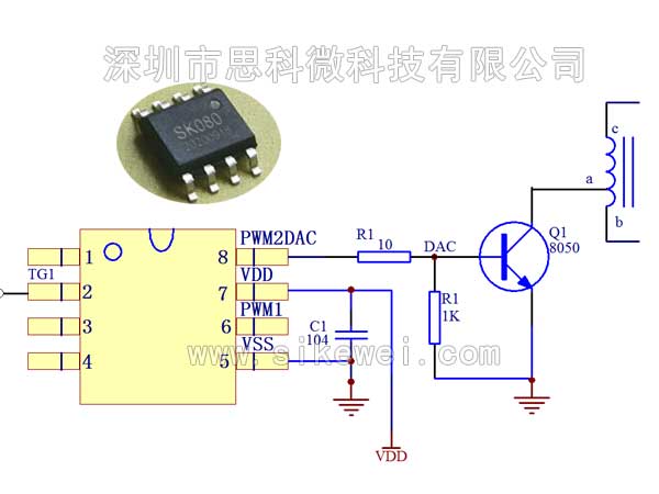 DAC:是Digital to Analog Converter(數(shù)模轉(zhuǎn)換器)的縮寫。DAC輸出信號(hào)要先經(jīng)過放大電路,再接喇叭。語音IC的 DAC一般為電流型DAC即輸出的是電流變化的信號(hào),所以接功放時(shí)一般要用I-R電路轉(zhuǎn)成電壓信號(hào),簡(jiǎn)單的I-R電路就是在DAC輸出腳接一個(gè)電阻到地轉(zhuǎn)成電壓信號(hào)。 這種兩種輸出方式一般語音芯片寫錄時(shí)選擇使用那種語音輸出方式