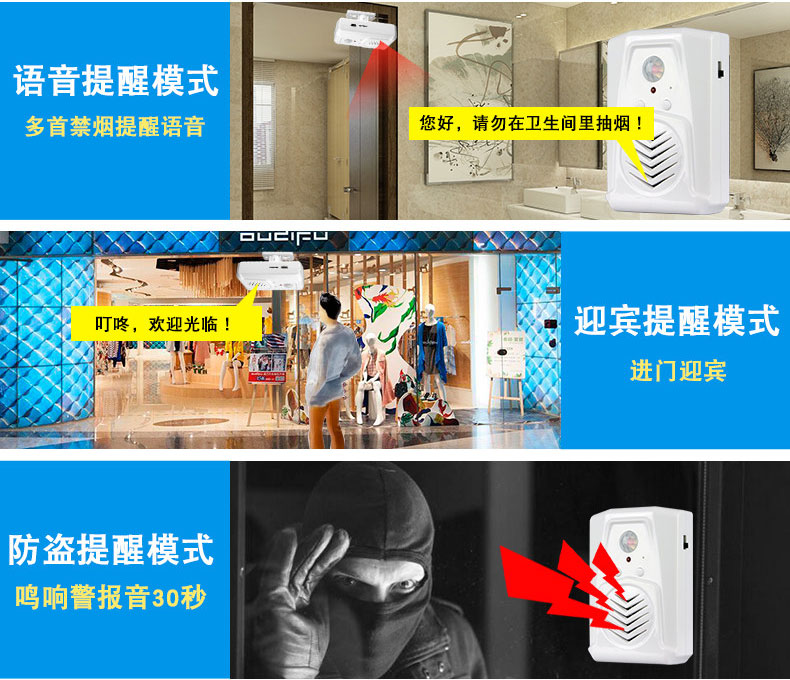 禁煙語音提醒器,禁煙宣傳好幫手,它可以安裝在車站、樓梯、廁所等多種場所,通過紅外線感應(yīng)到人就可以自動提示。本產(chǎn)品由深圳思科微電子有限公司研發(fā)生產(chǎn),其功能簡單強大,音質(zhì)優(yōu)美。它采用人體感應(yīng)原理。有多種款式選擇;單位控?zé)熣Z音提醒、物業(yè)管理控?zé)熖嵝�、禁煙語音提醒、醫(yī)院場所禁煙提示。 |