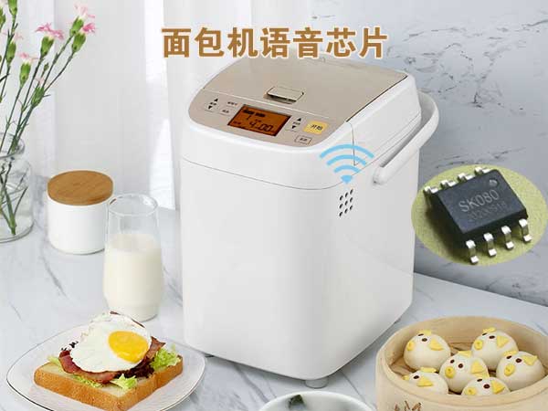 思科微面包機(jī)語音IC方案是真人語音提示設(shè)定,滿足烘焙智能需求,享受健康食品該款面包機(jī)音IC方案,控制板程序真人語音提示選擇菜單 ;“燒色鍵”;“分量鍵”;“開端鍵”“△與▽鍵”作業(yè)或預(yù)約時刻。思科微SK系列語音播放芯片,為sop8/dip8的小封裝OTP8腳語音芯片,外圍電路簡易,適合嵌入式開發(fā),語音清晰洪亮,體積小巧,物美價低單芯片智能面包機(jī)語音提示語音芯片,語音長度支持20-180秒。8級音量控制,兩種音頻輸出式,PWM輸出和DAC輸出。
