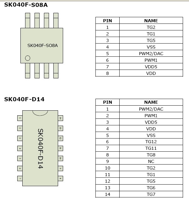 二、SK040F-SOP8/DIP8/DIP14系列語音IC管腳圖: