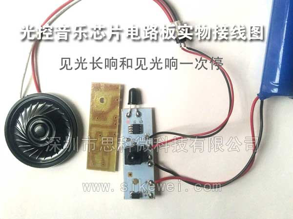 感應(yīng)光控音樂芯片 光感應(yīng)語音IC控制板實(shí)物接線圖